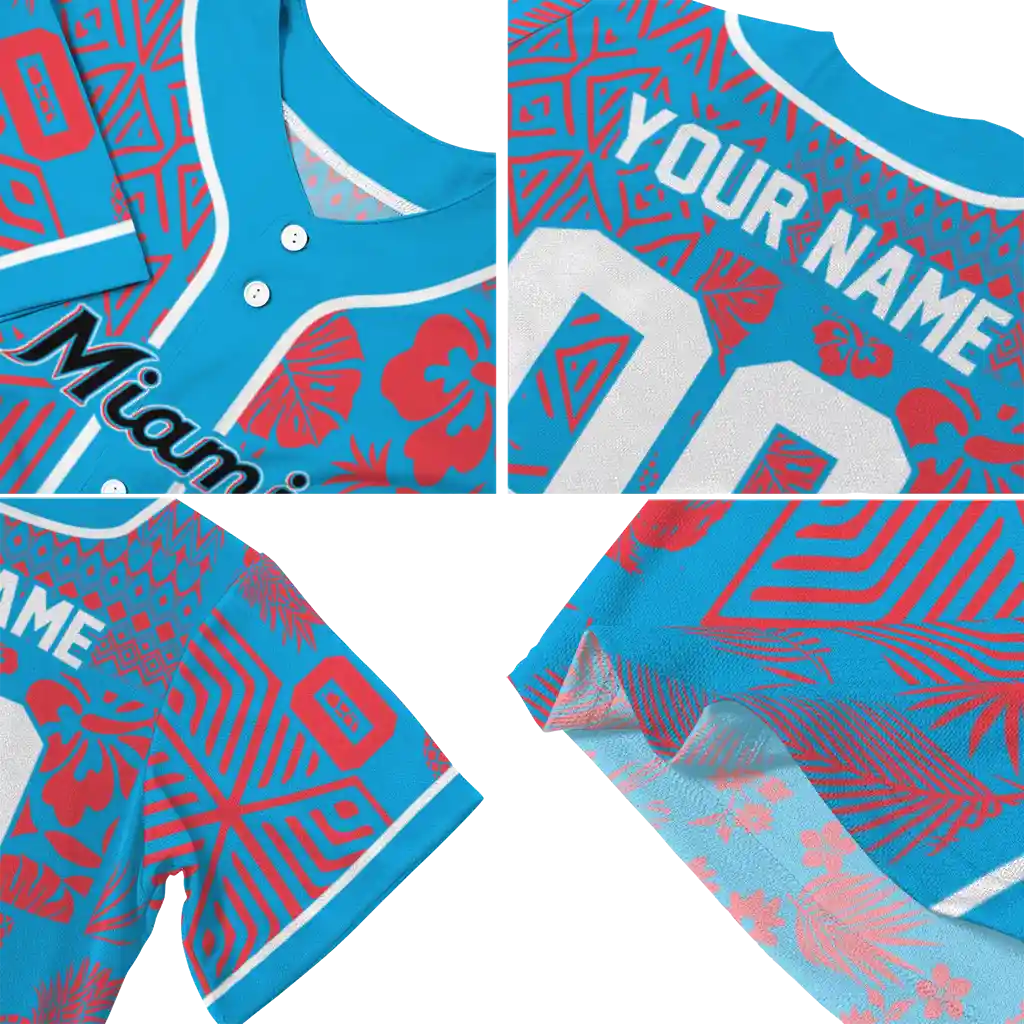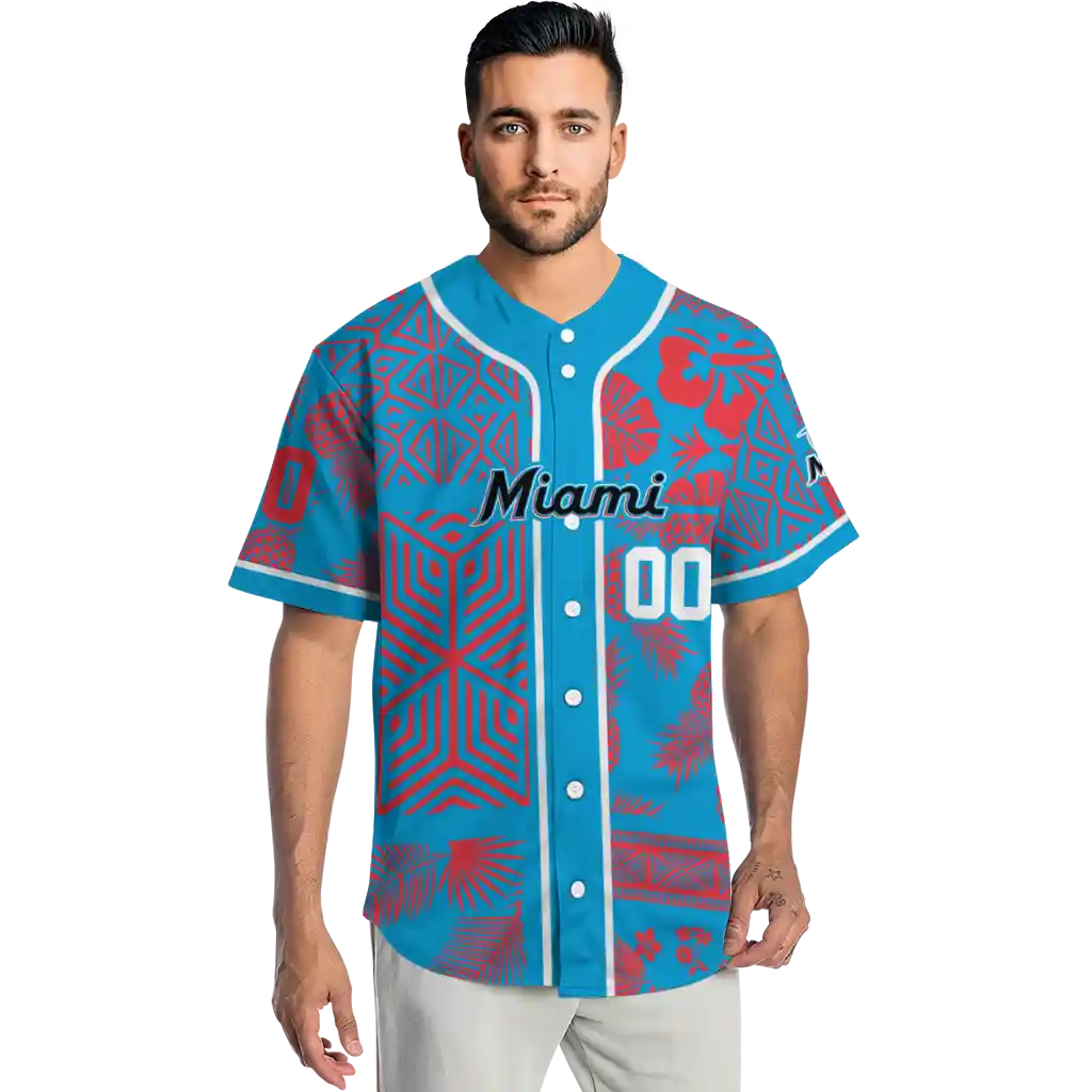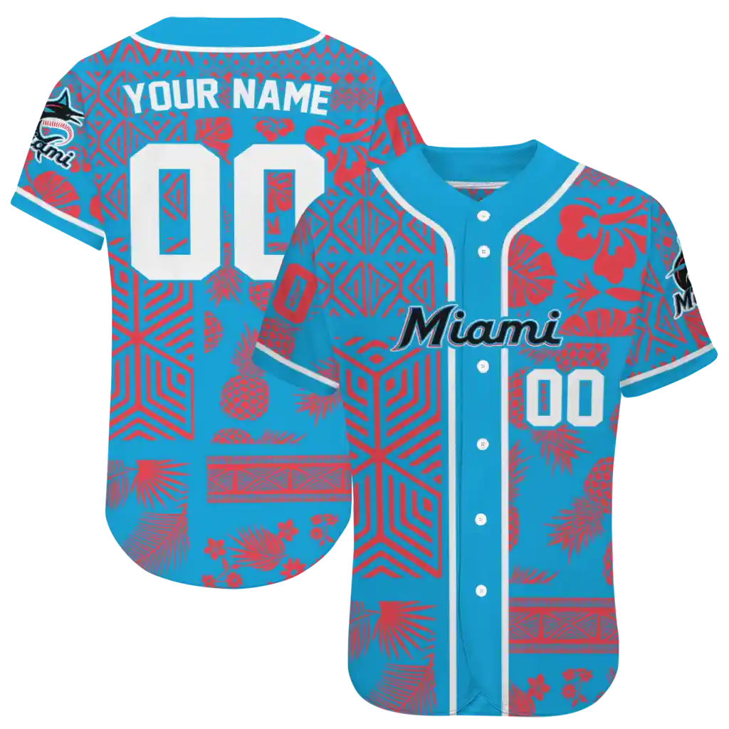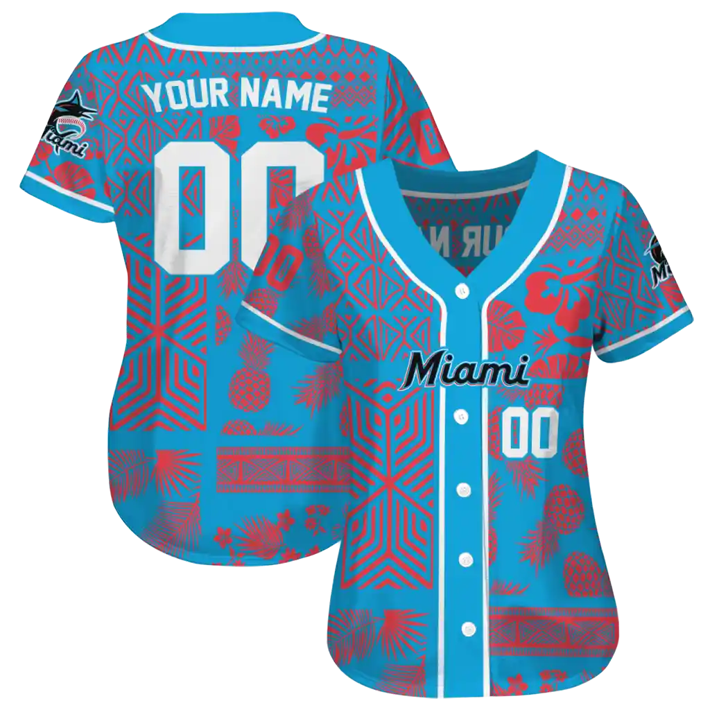 Miami Marlins Jersey – Personalized Pineapple Palm Geo Blue