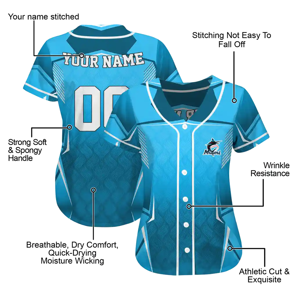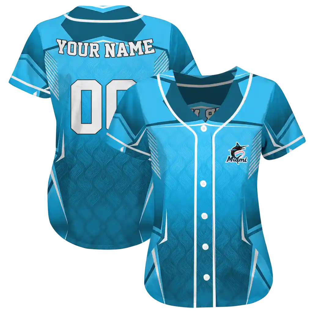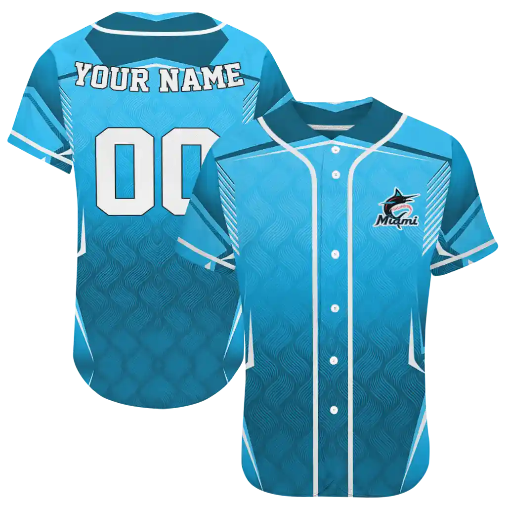 Miami Marlins Wavy Jersey – Personalized Flow Blue