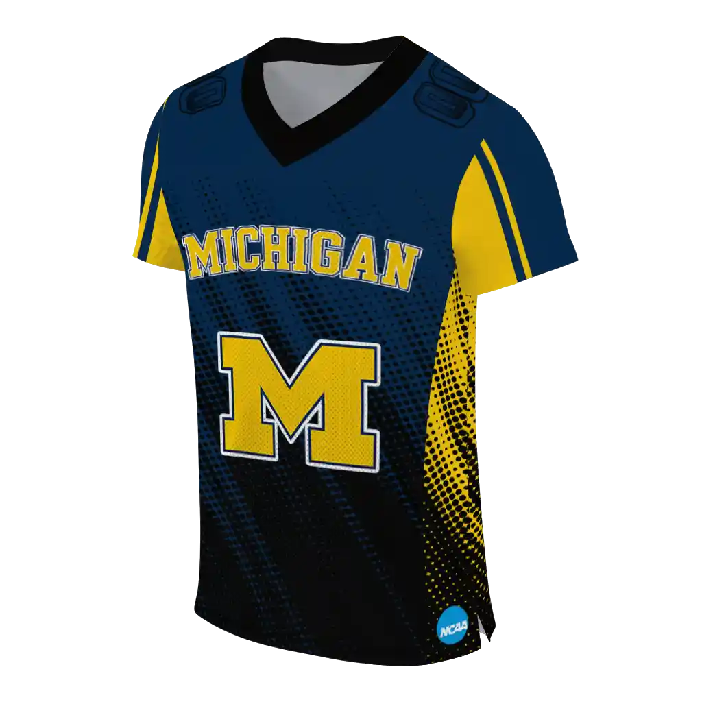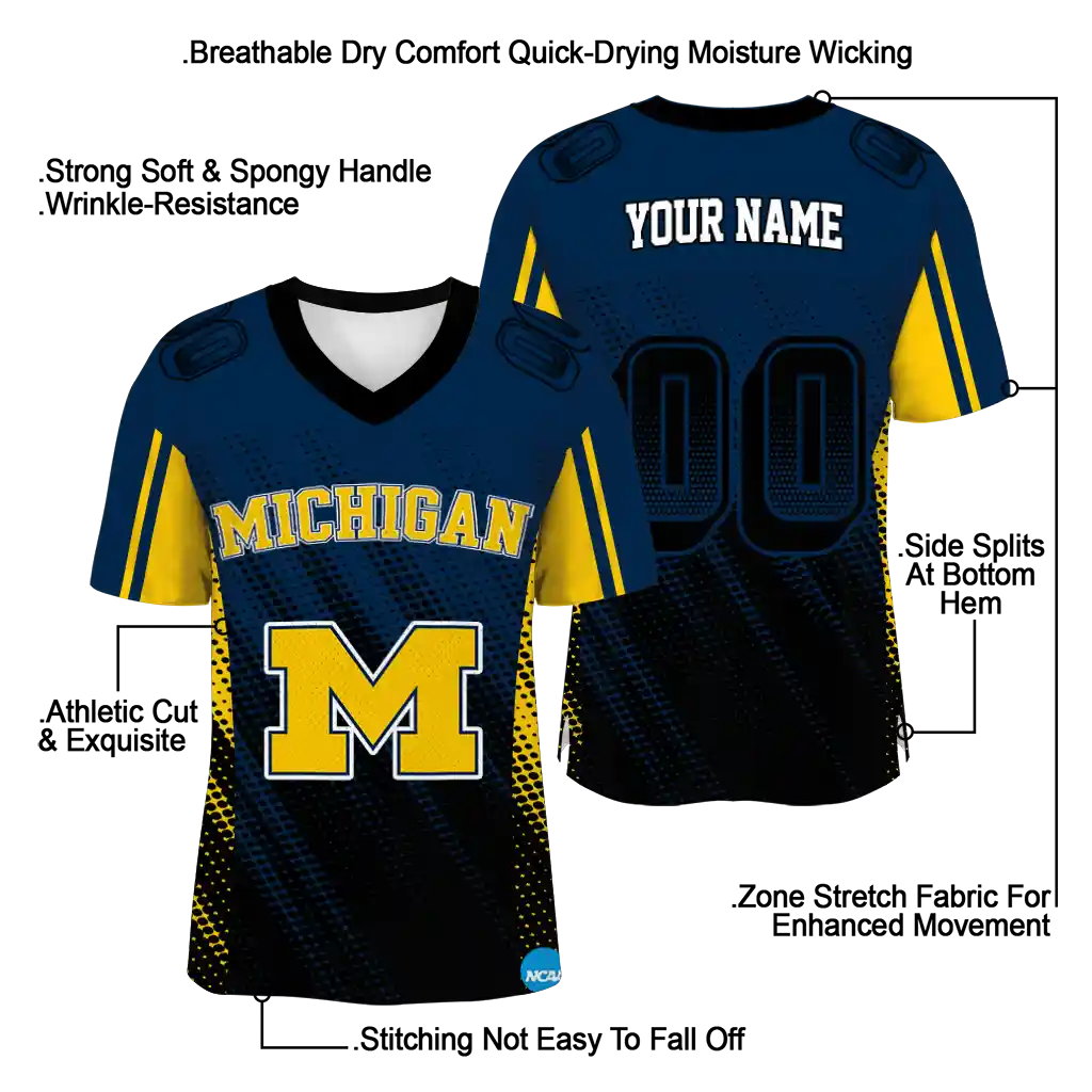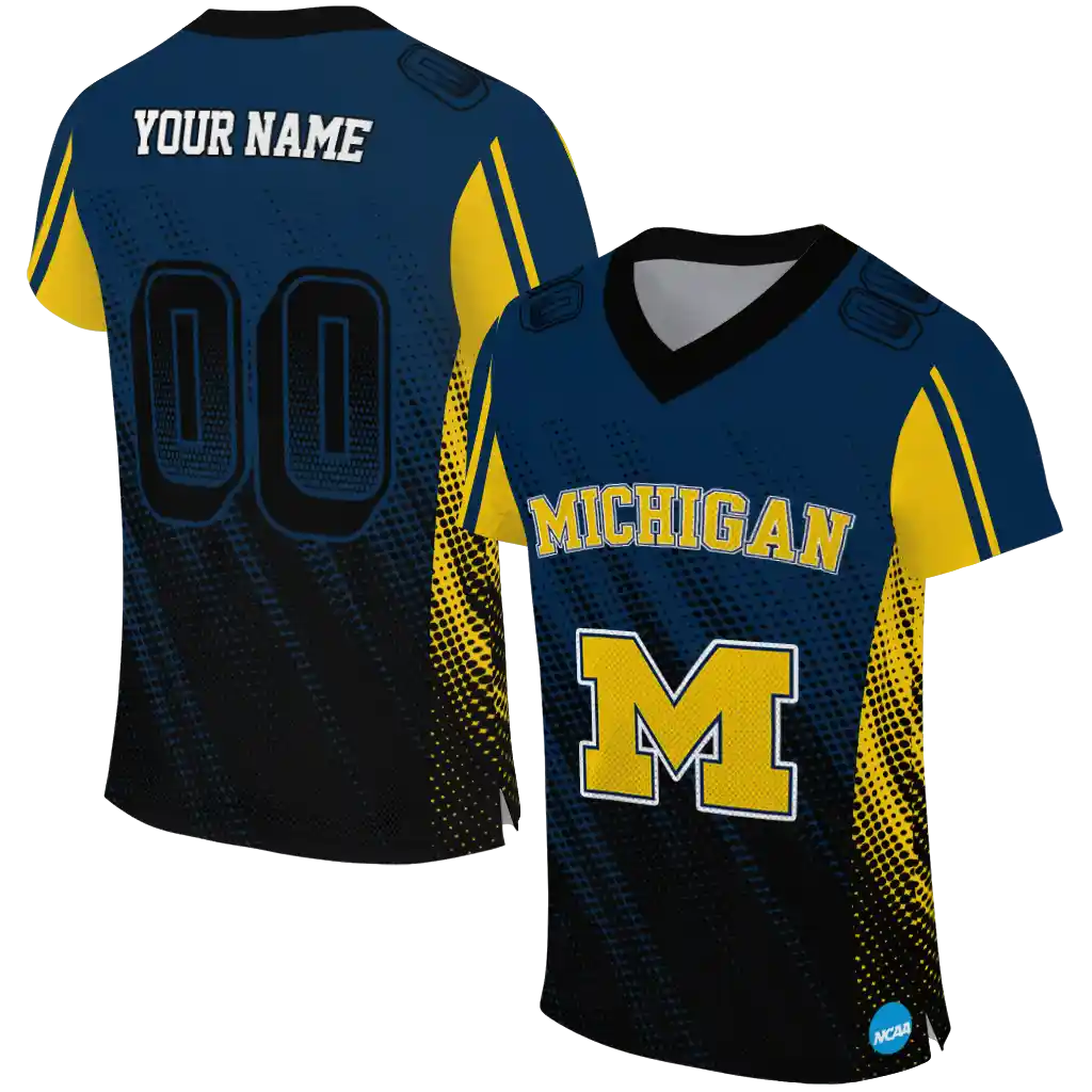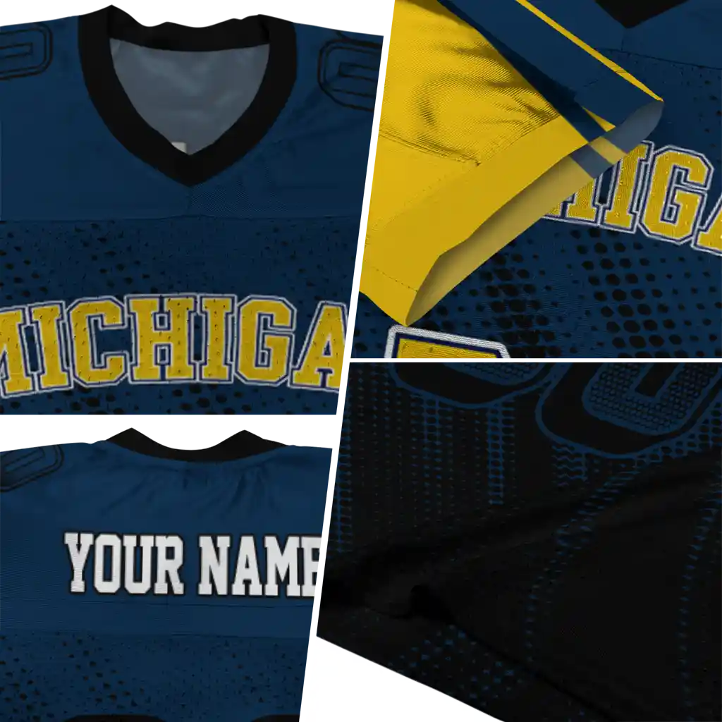 Michigan Wolverines Jersey – Personalized Halftone Flow Blue Black
