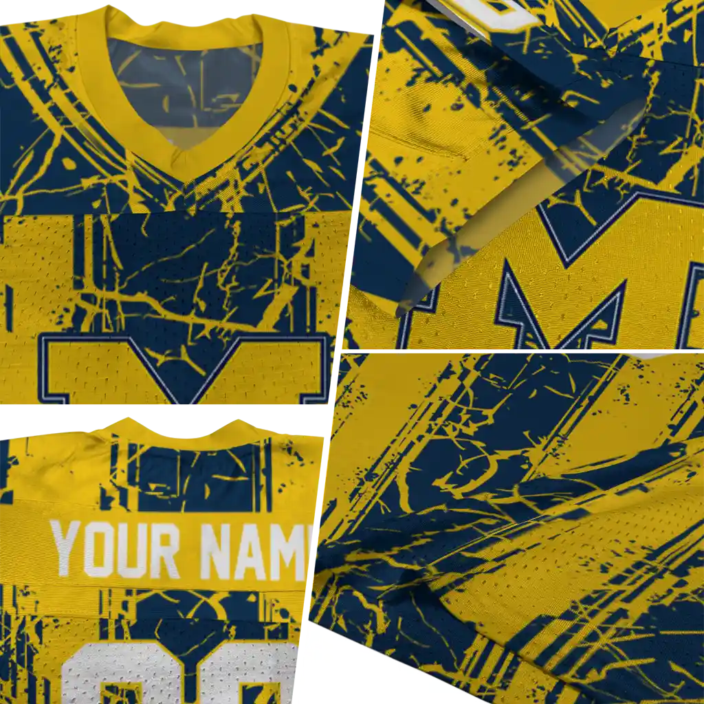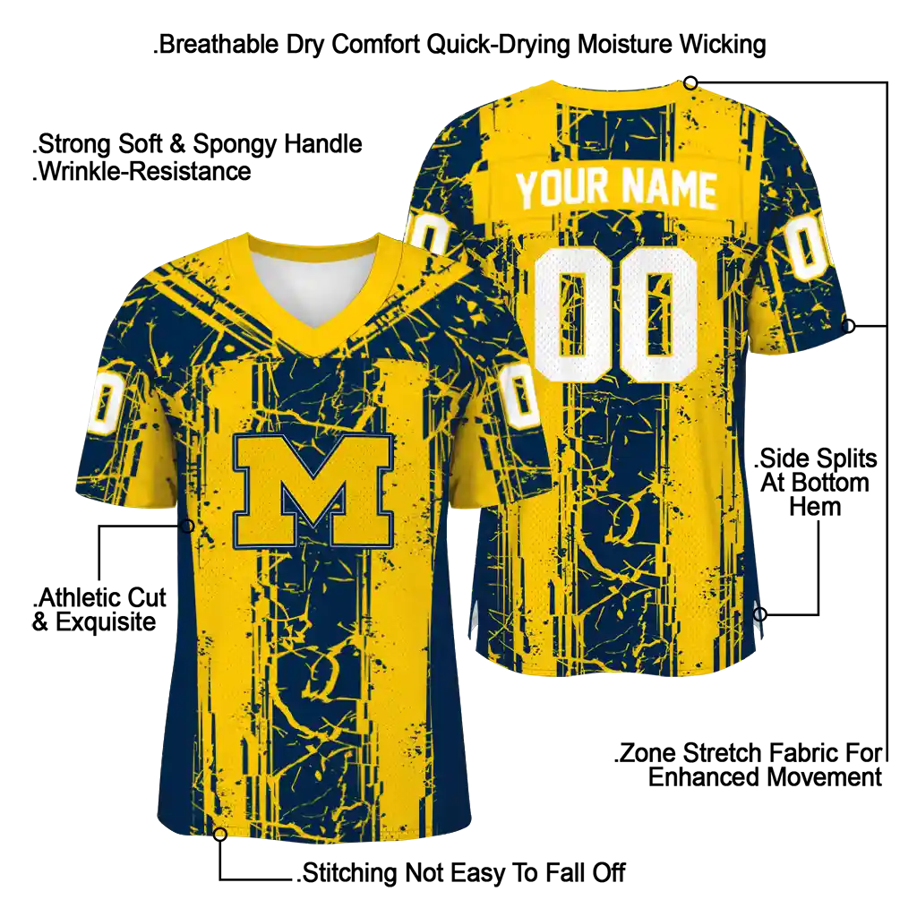 Michigan Wolverines Jersey – Personalized Rugged Stripes Blue