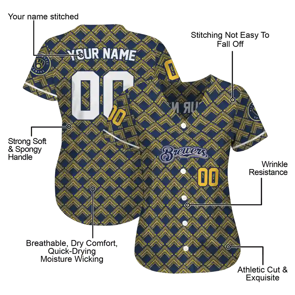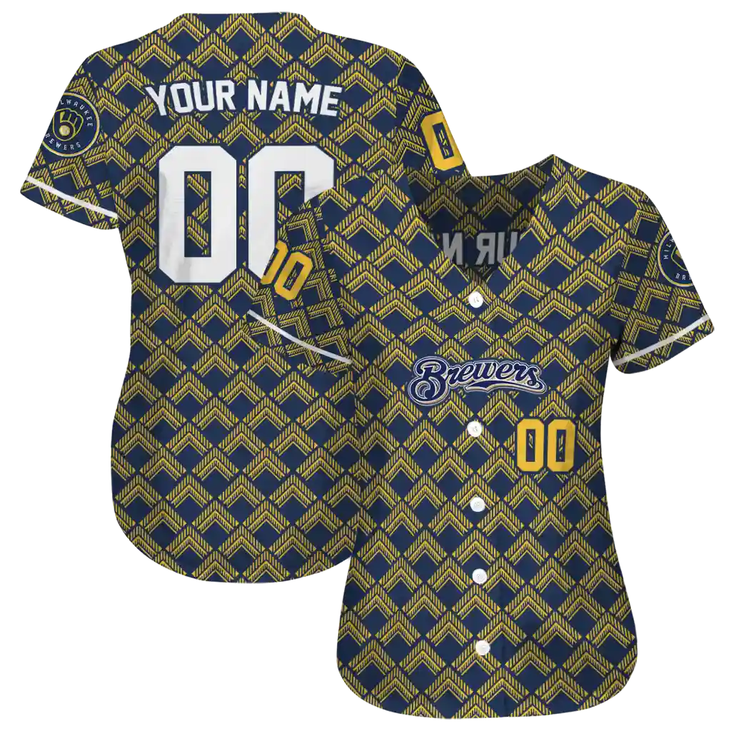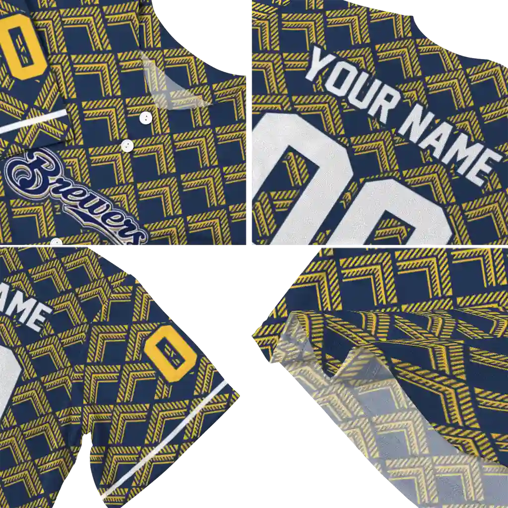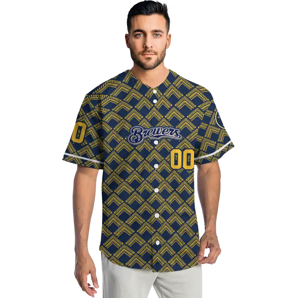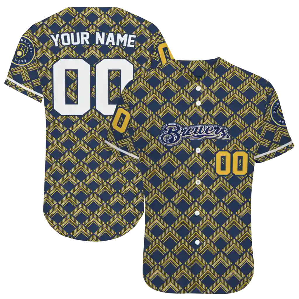 Milwaukee Brewers Jersey – Personalized Chevron Interlock Navy Blue