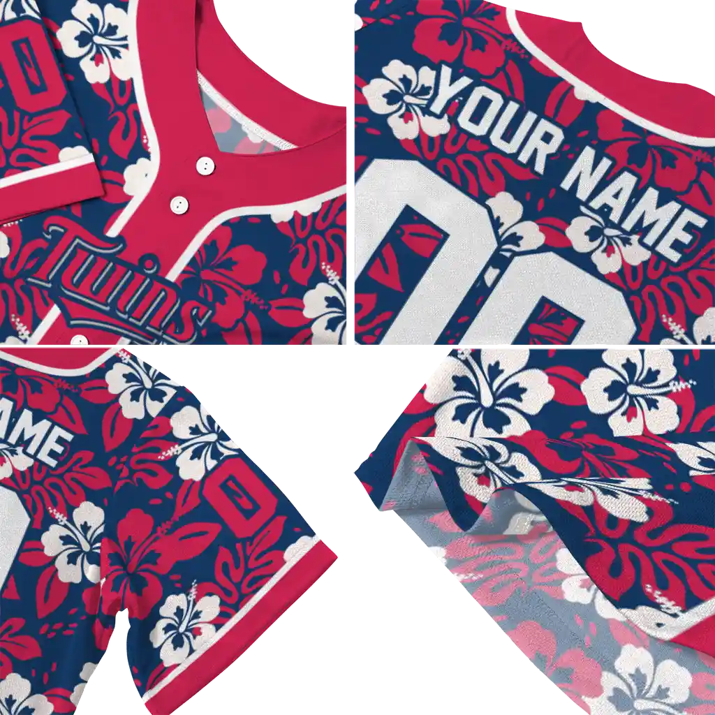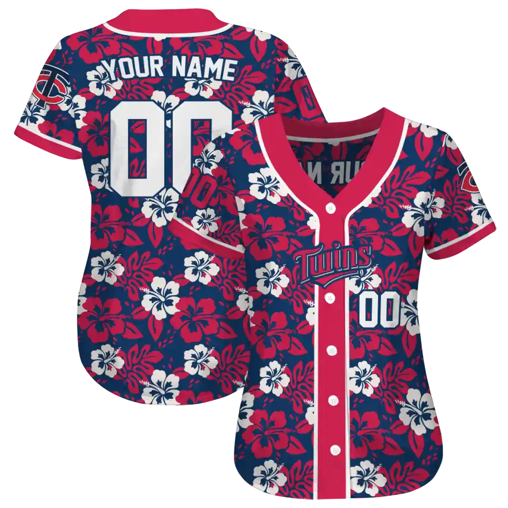 Minnesota Twins Jersey – Personalized Tropical Hibiscus Red