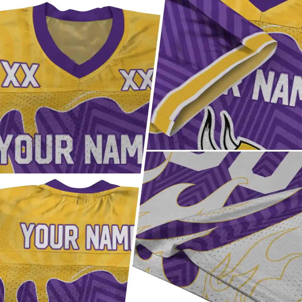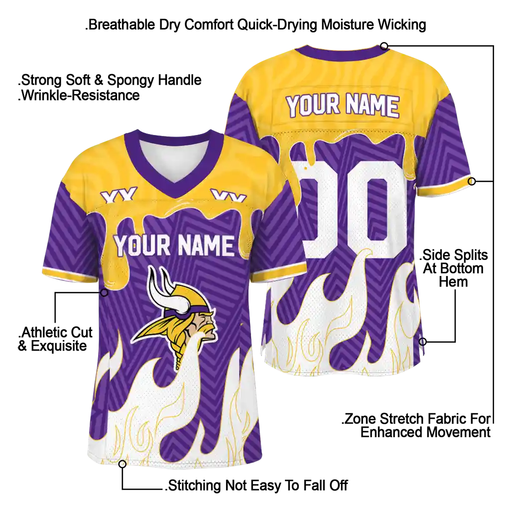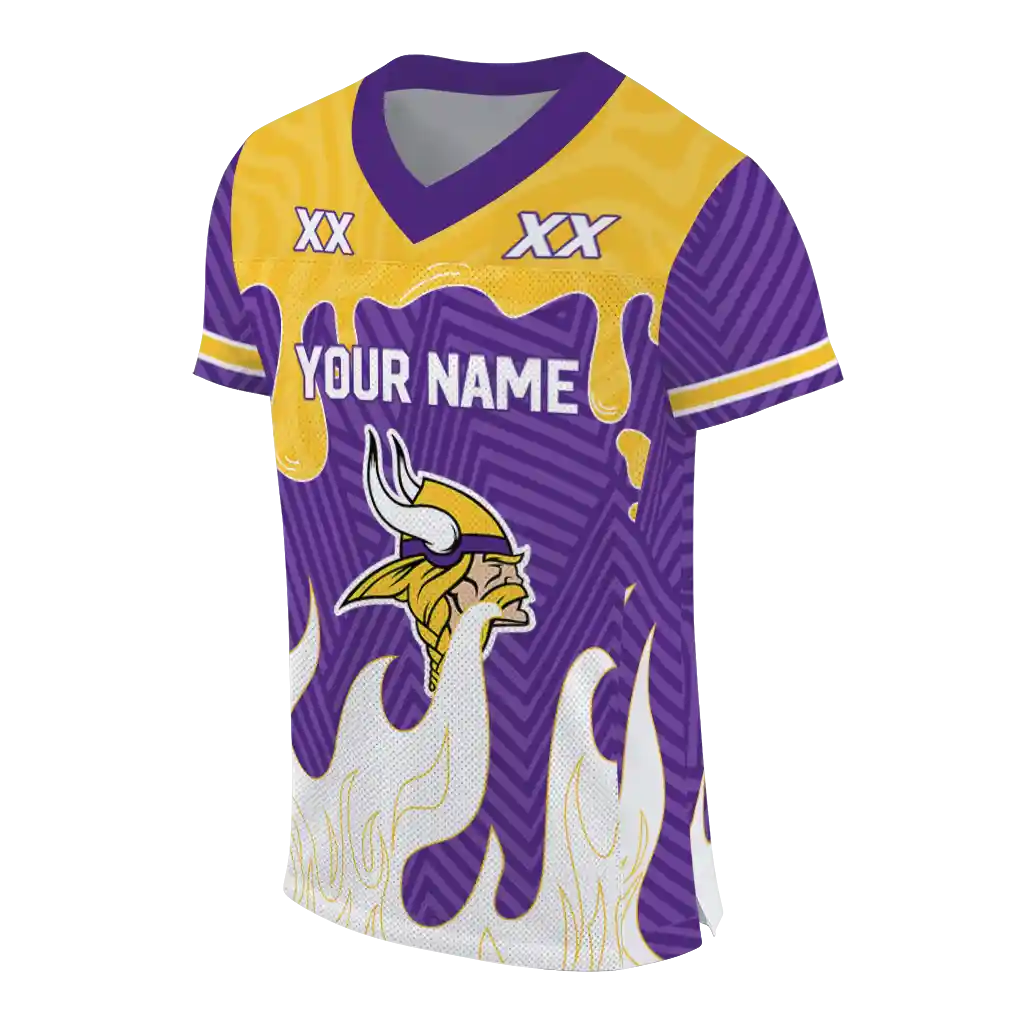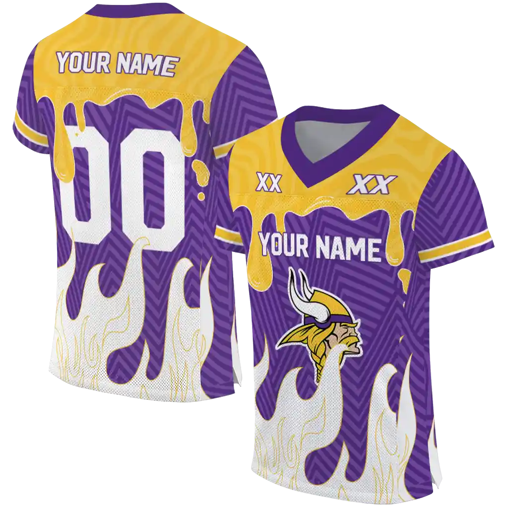 Minnesota Vikings Jersey – Personalized Dripping Flames Purple White