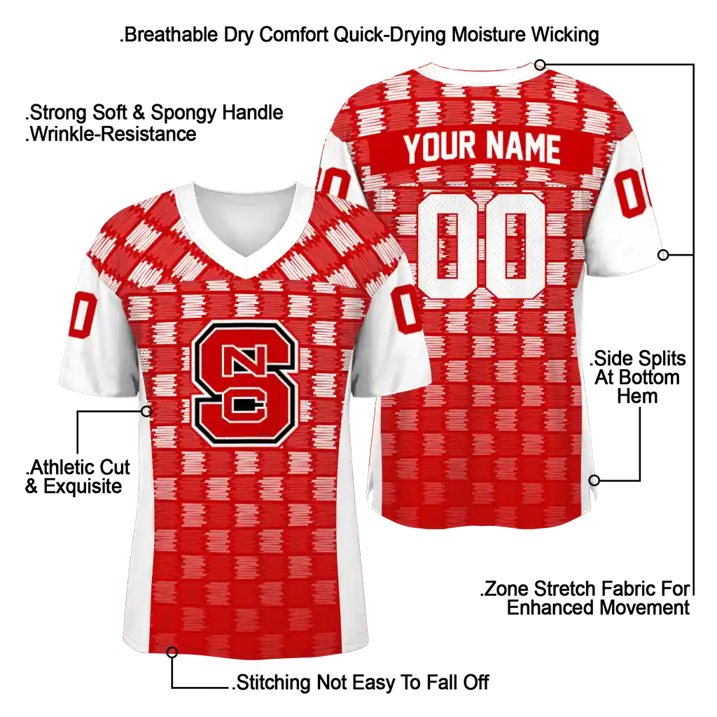 NC State Wolfpack Jersey – Personalized Stacked Rectangle Red
