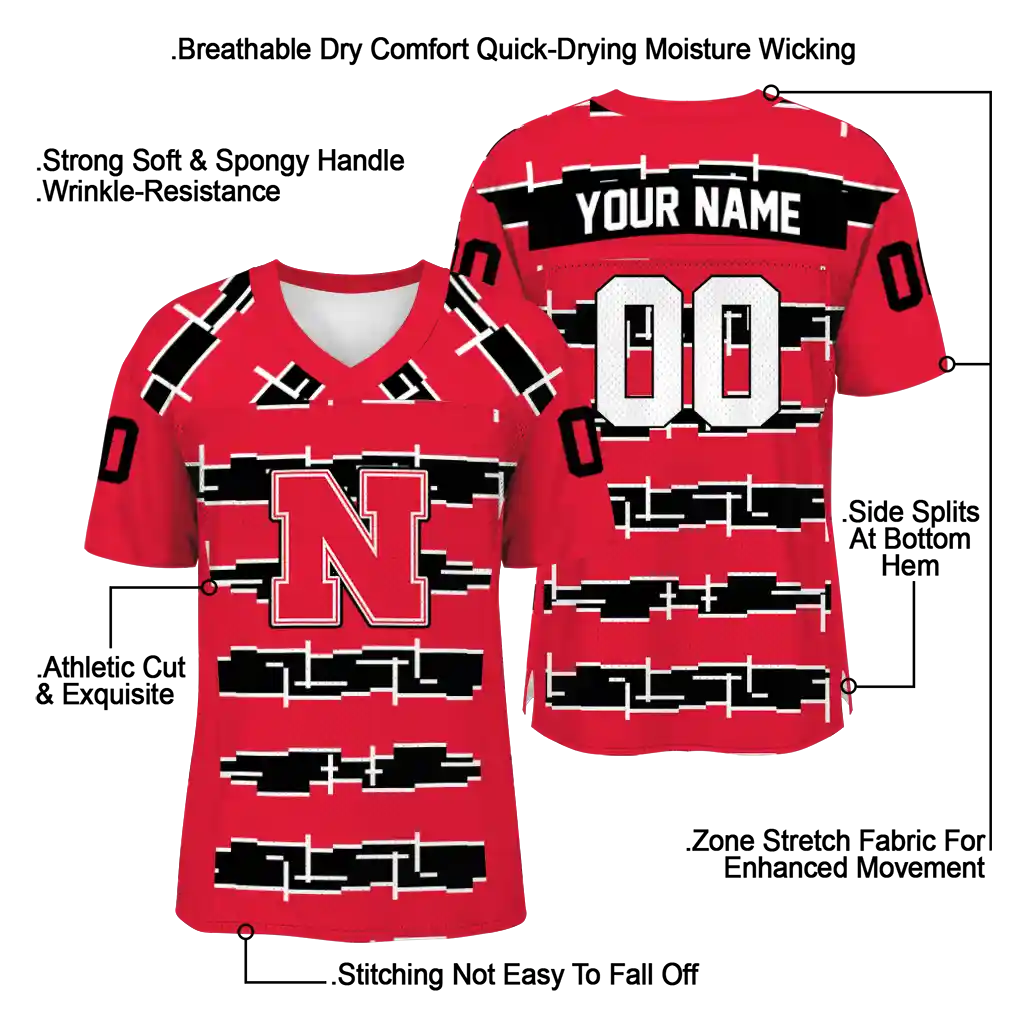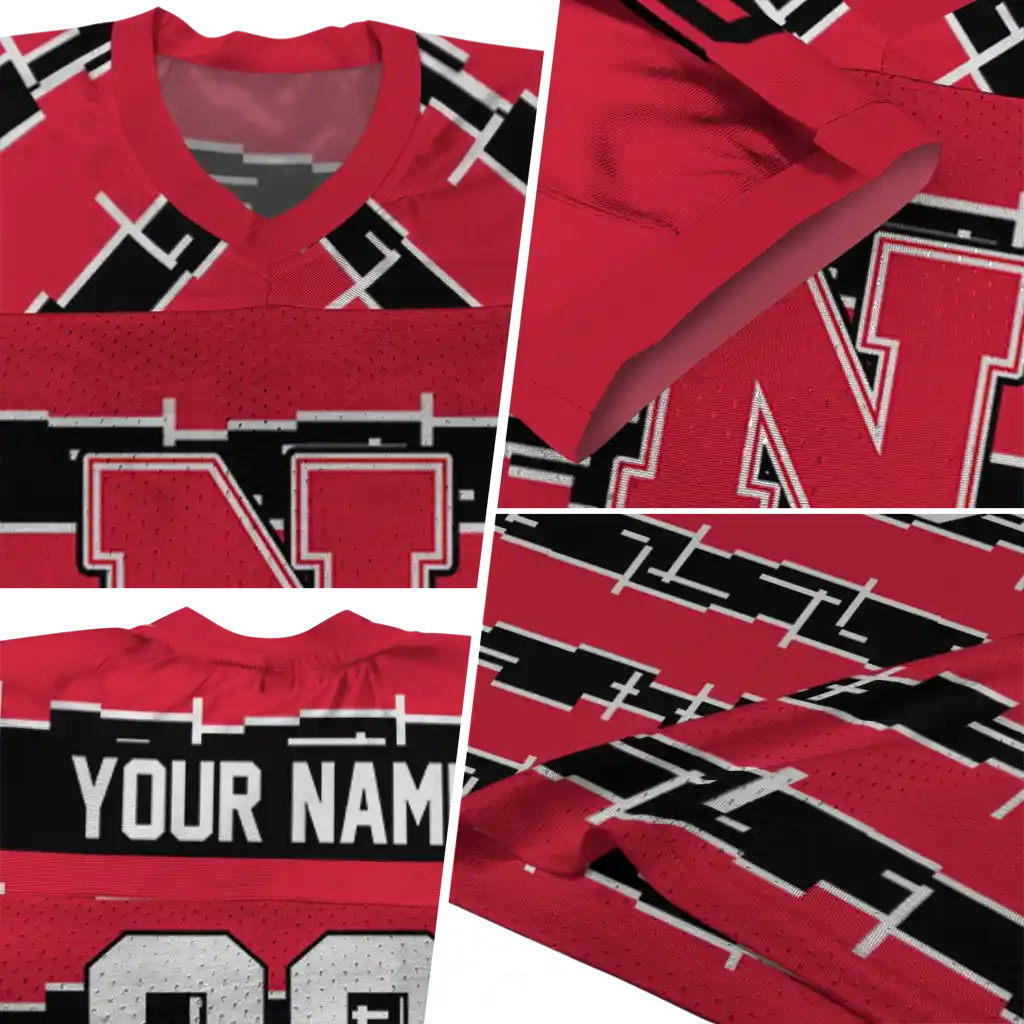 Nebraska Cornhuskers Jersey – Personalized Layered Grids Red