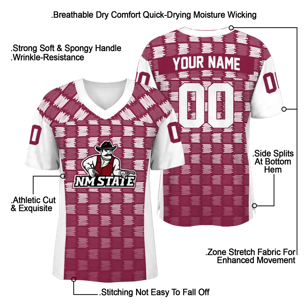 New Mexico State Aggies Jersey – Personalized Stacked Rectangle Crimson