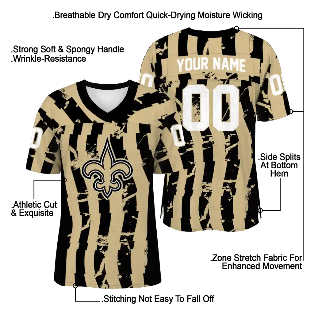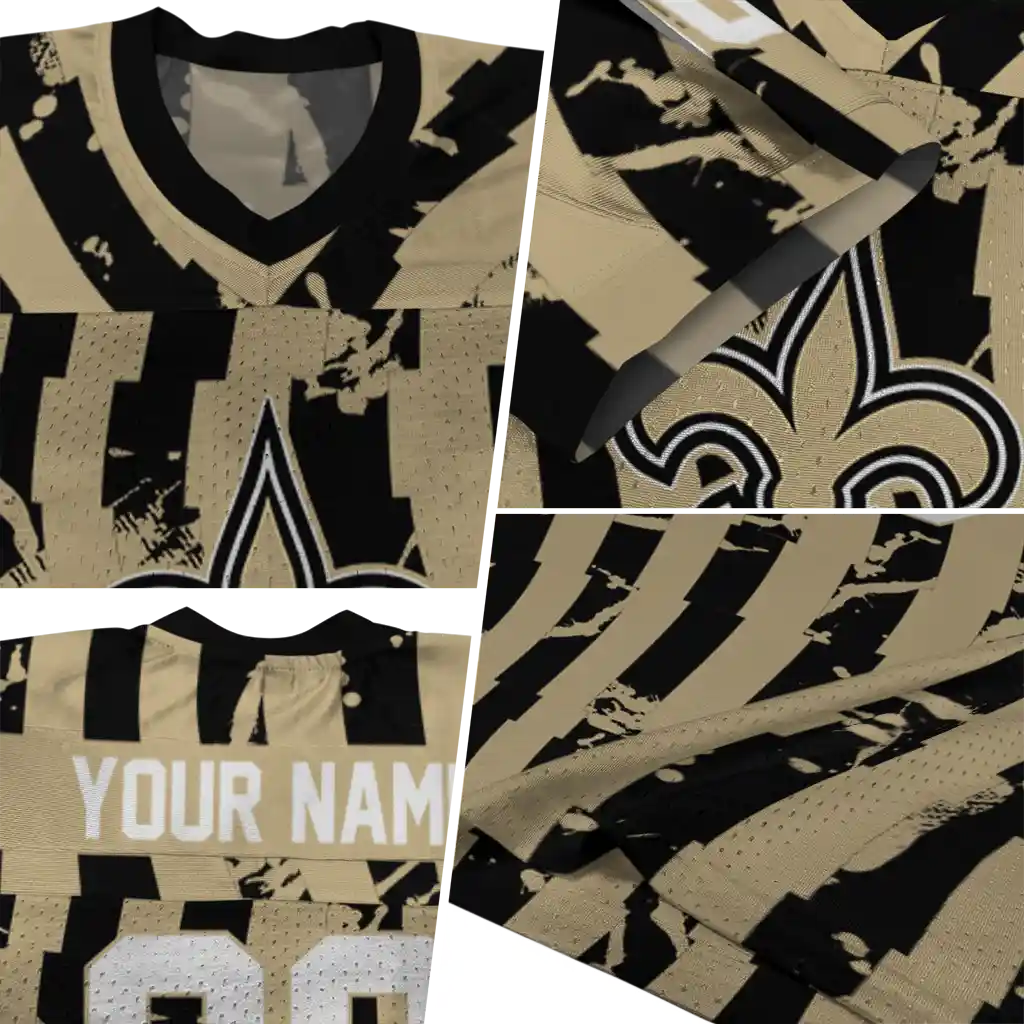 New Orleans Saints Jersey – Personalized Stripe Splatter Gold