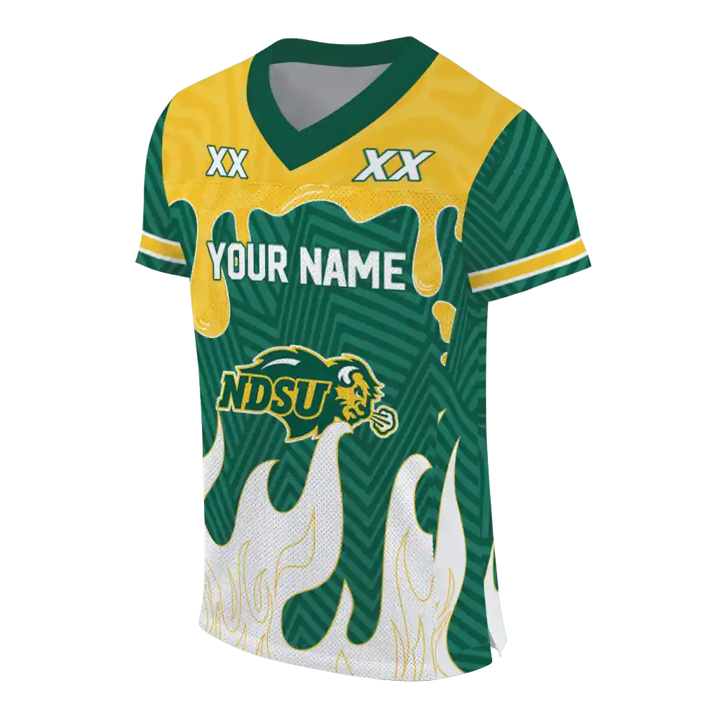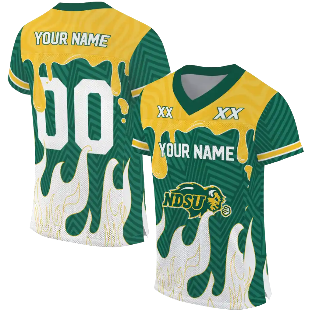 North Dakota State Bison Jersey – Personalized Dripping Flames Green White