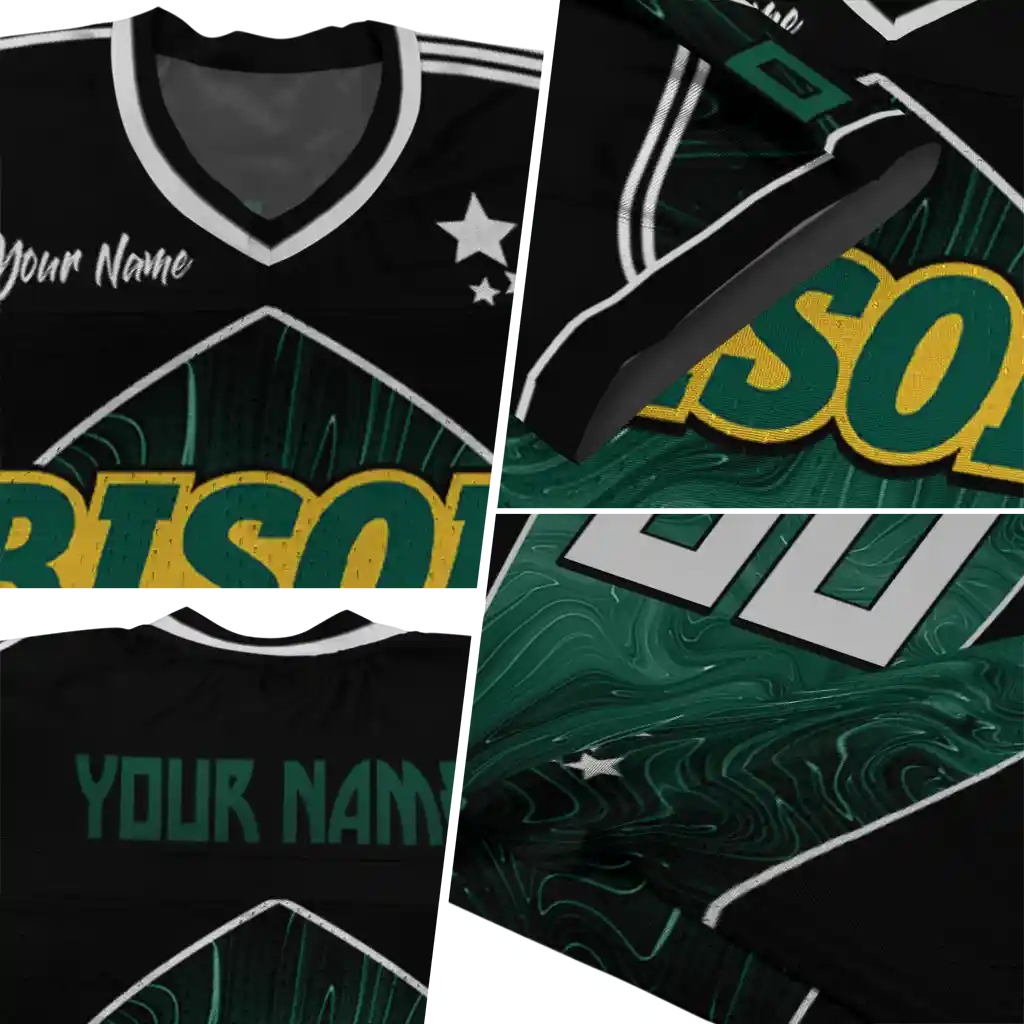 North Dakota State Bison Jersey – Personalized Halftone Slant Green Black