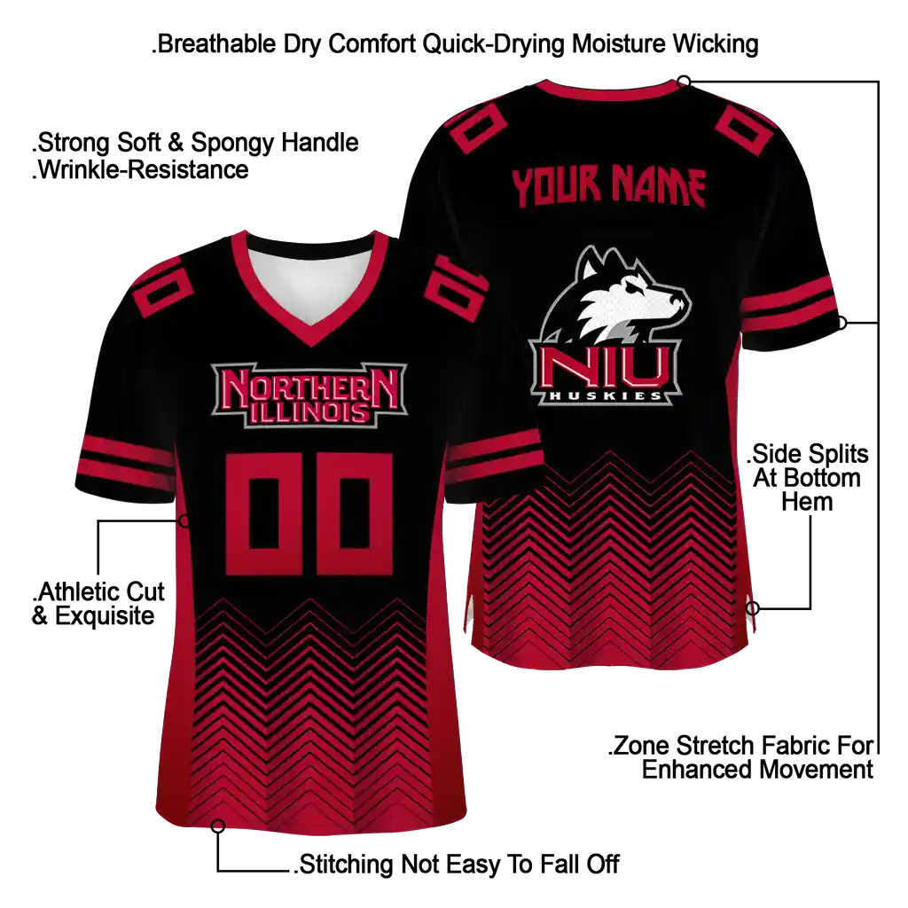 The Northern Illinois Huskies Jersey – Personalized Halftone Sweep Silver Black delivers professional style and performance with the flexibility to make it uniquely yours. Engineered with breathable fabrics and moisture-wicking technology, it ensures you stay cool, dry, and comfortable—even in high-intensity games.