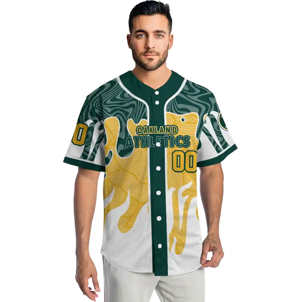Oakland Athletics Jersey – Personalized Pattern Drip Green White