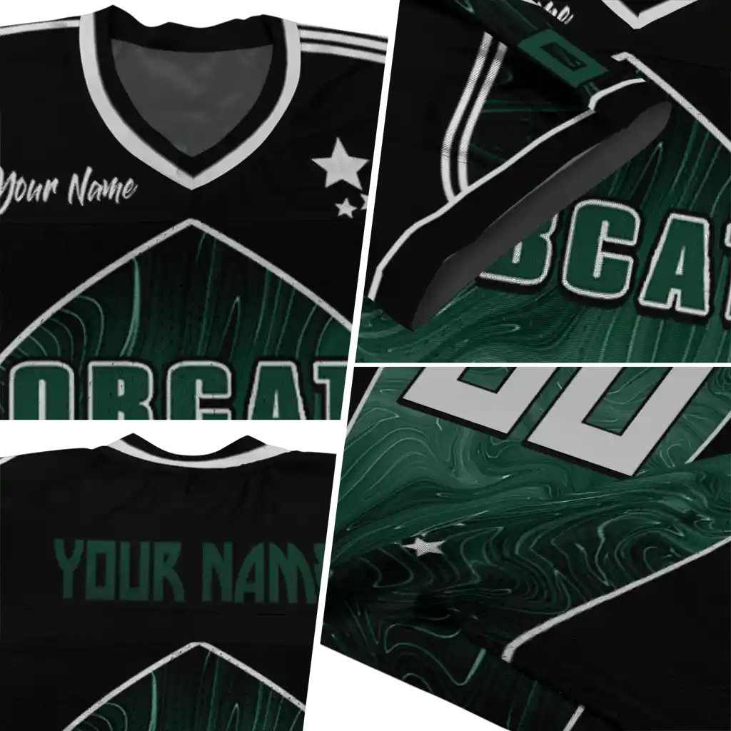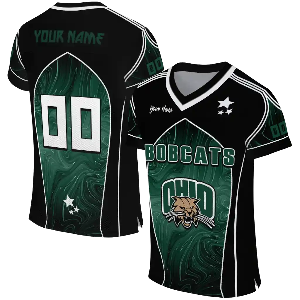 Ohio Bobcats Jersey – Personalized Halftone Slant Green Black