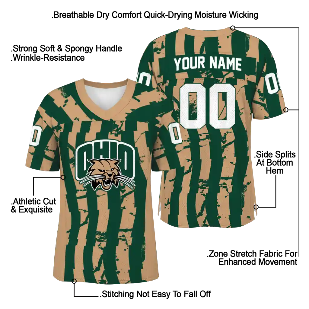 Ohio Bobcats Jersey – Personalized Stripe Splatter Green