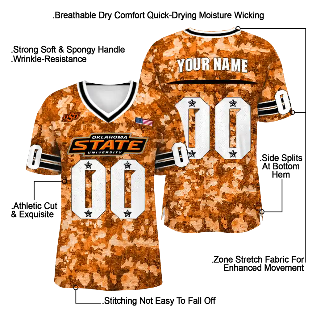 Oklahoma State Cowboys Jersey – Personalized Camouflage Abstract Orange