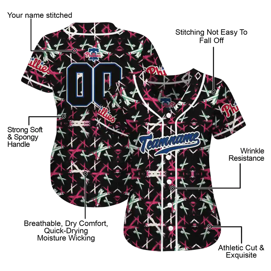Philadelphia Phillies Jersey – Personalized Abstract X Black