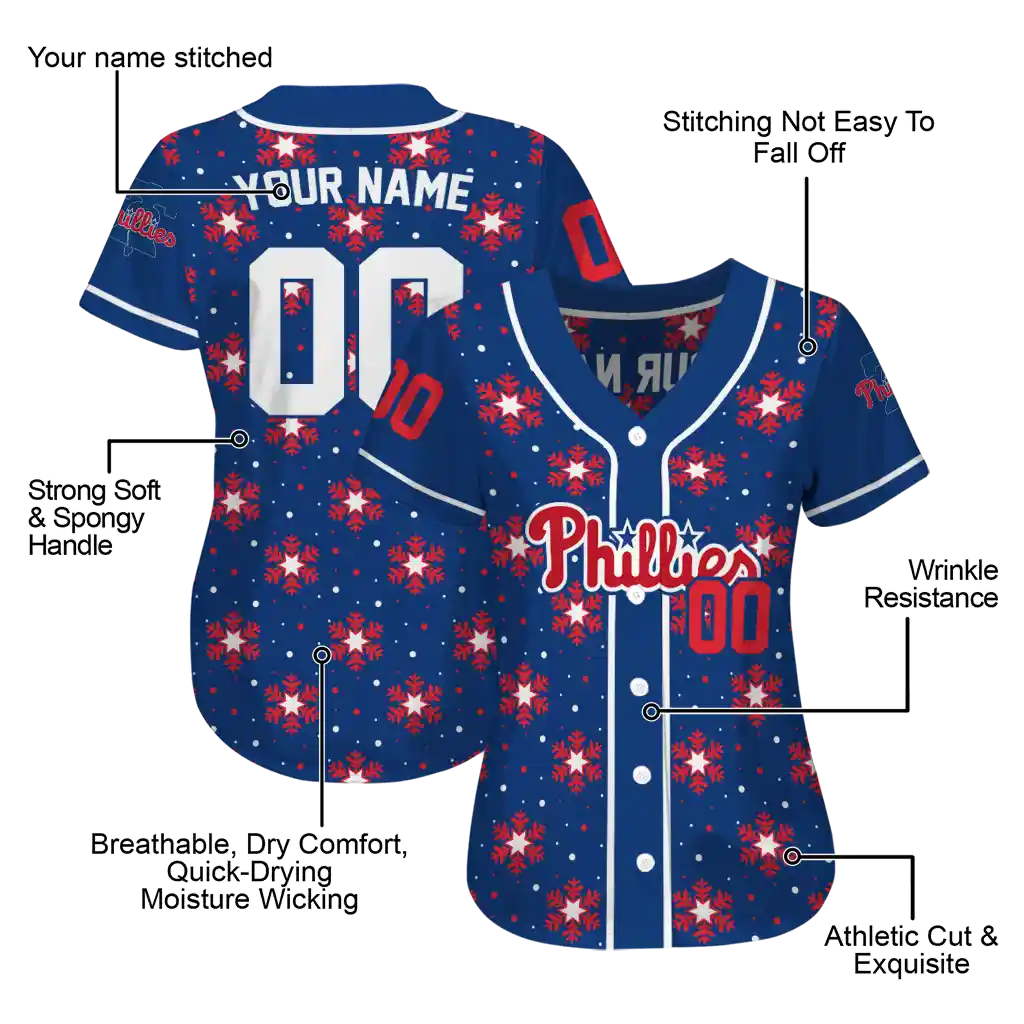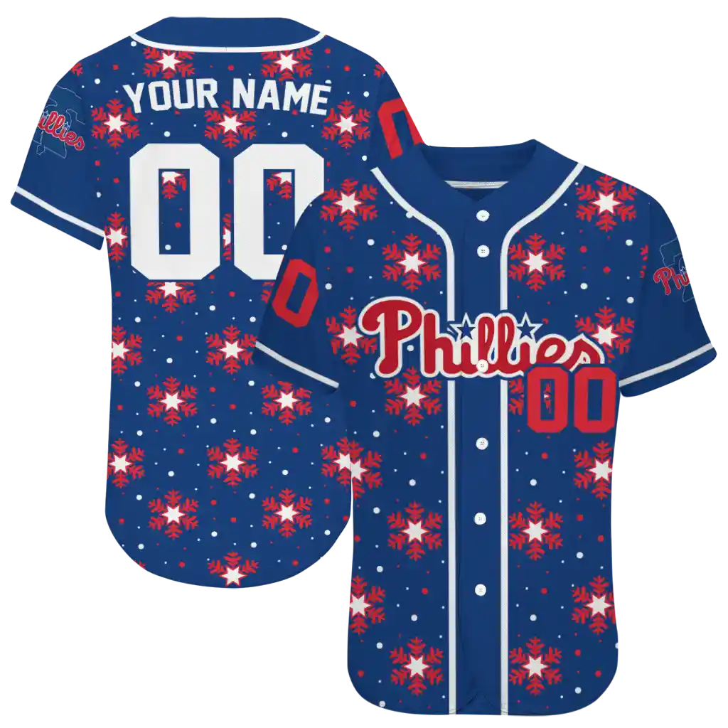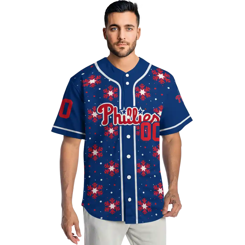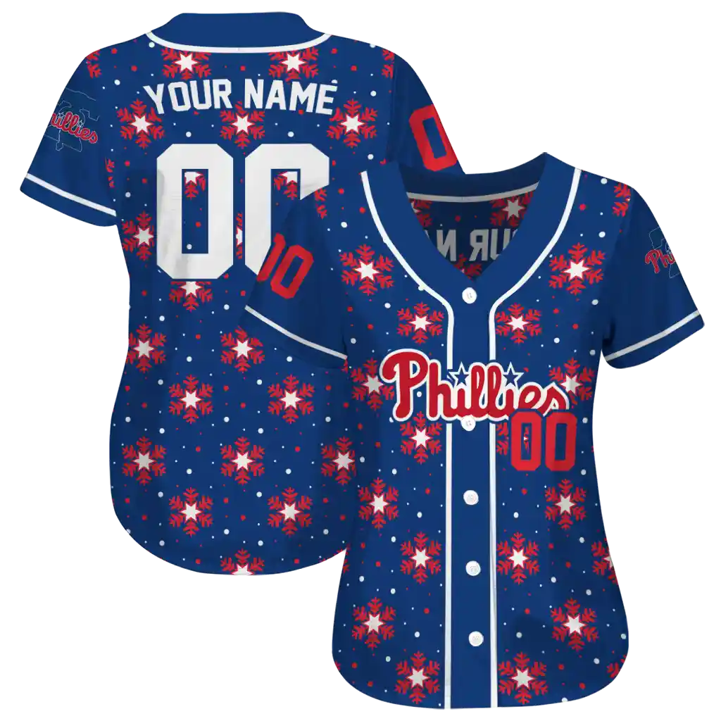Philadelphia Phillies Jersey – Personalized Snowflake Festive Blue