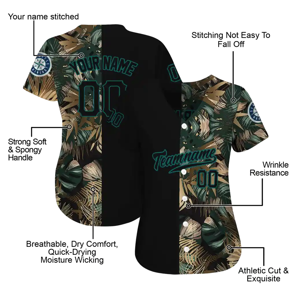 Seattle Mariners Jersey – Personalized Tropical Foliage Black