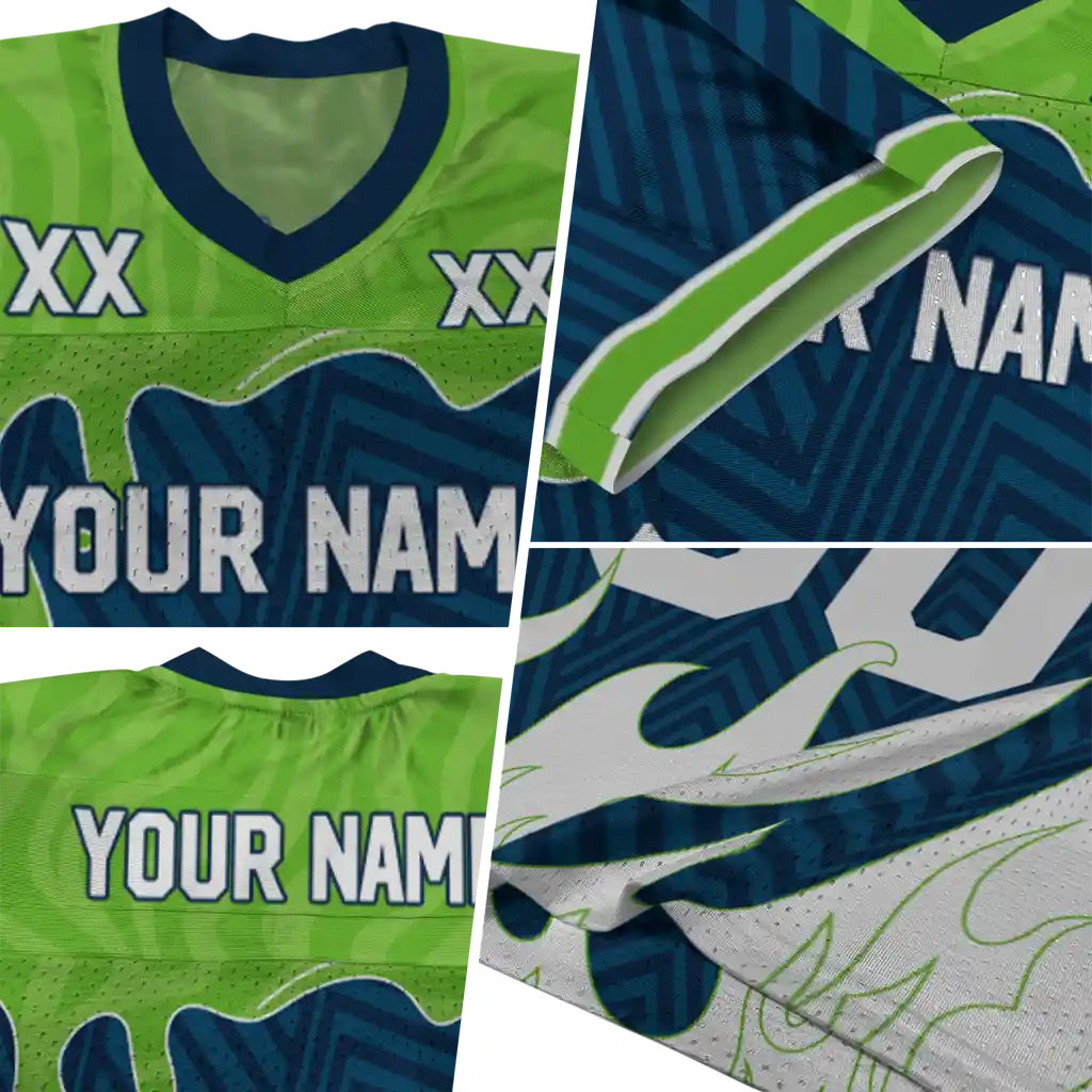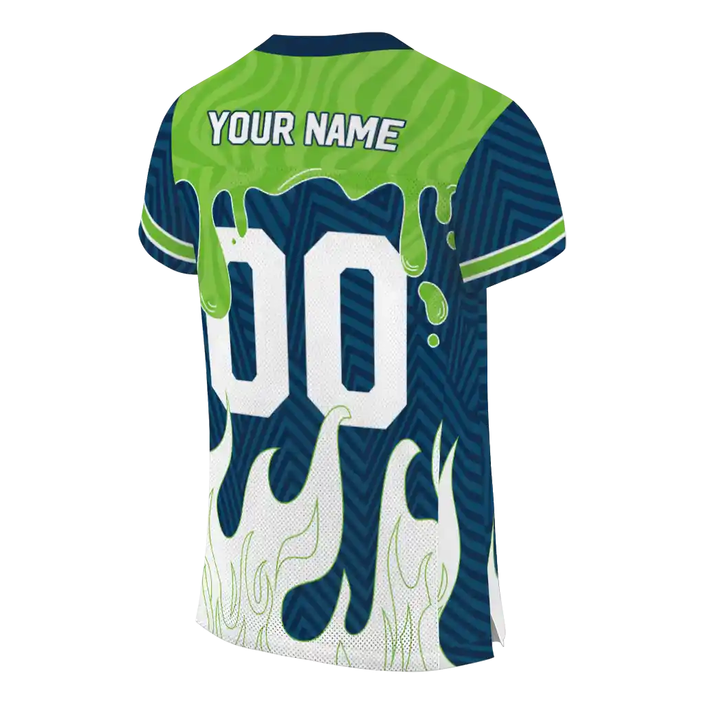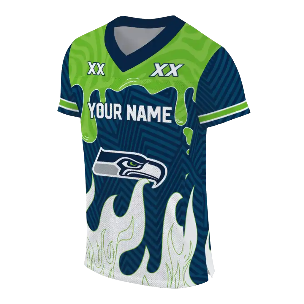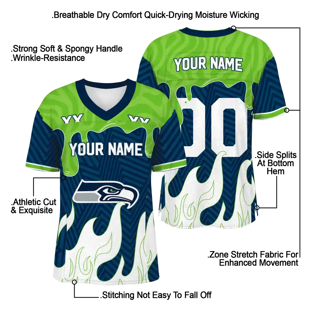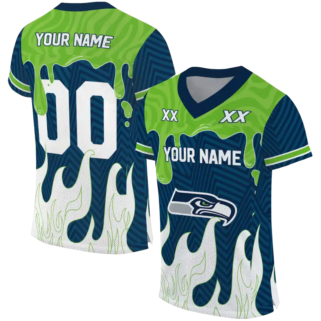 Seattle Seahawks Jersey – Personalized Dripping Flames Blue White