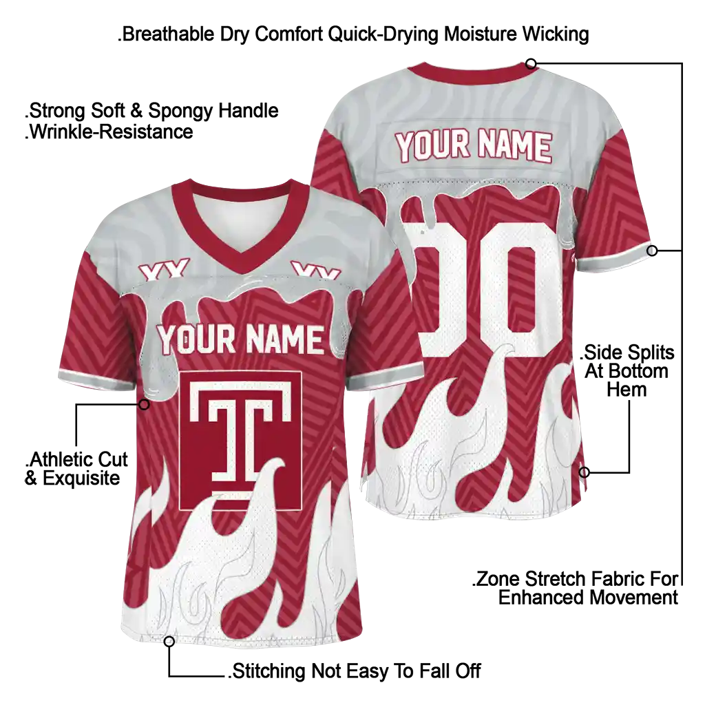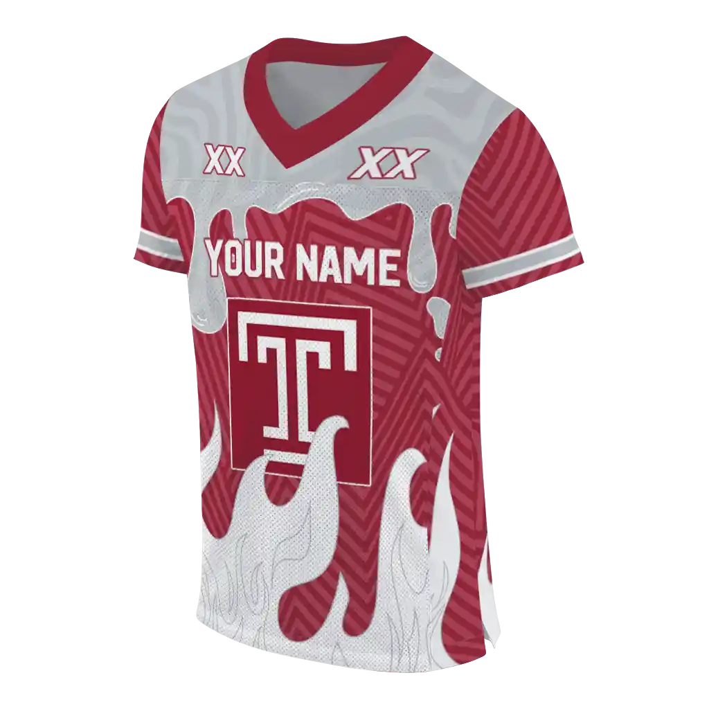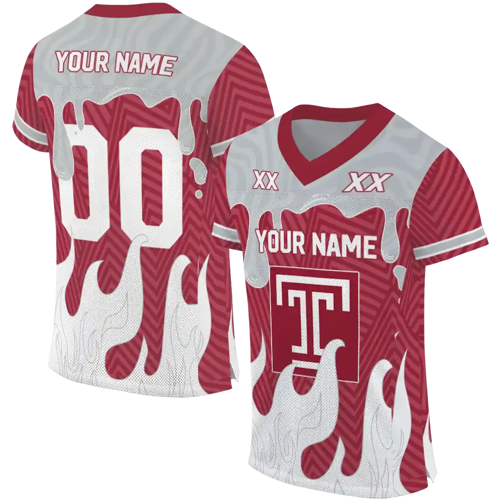 Temple Owls Jersey – Personalized Dripping Flames Red White