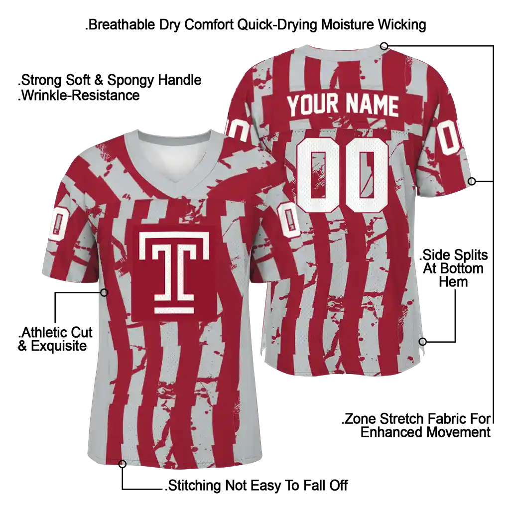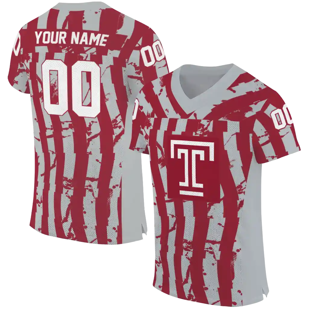 Temple Owls Jersey – Personalized Stripe Splatter Red