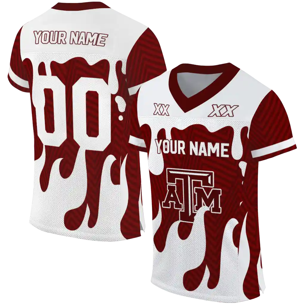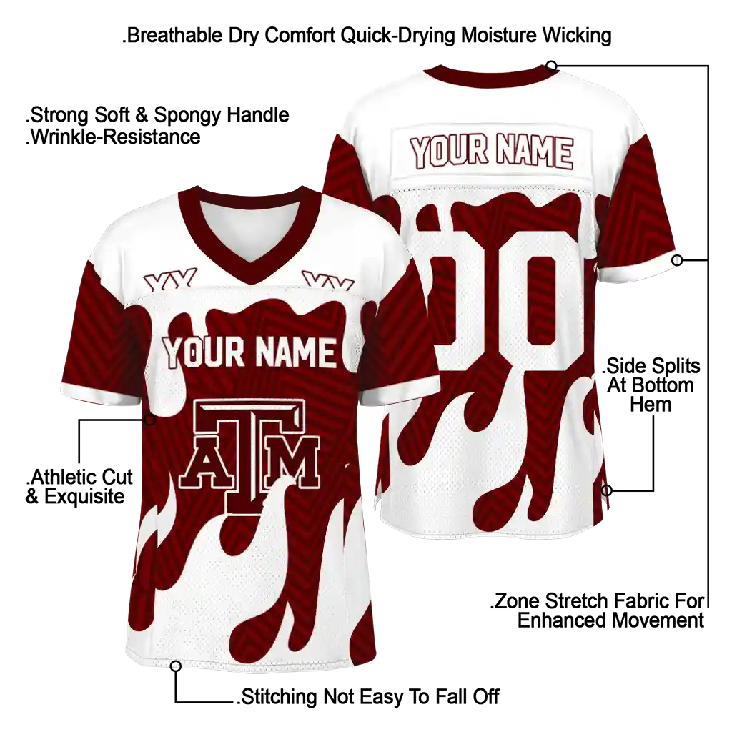 Texas A&M Aggies Jersey – Personalized Dripping Flames Maroon White