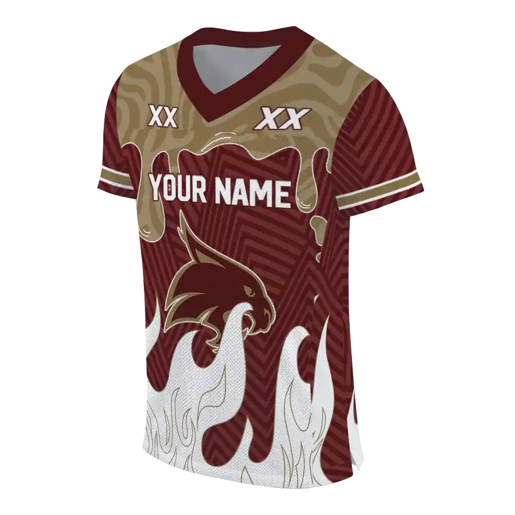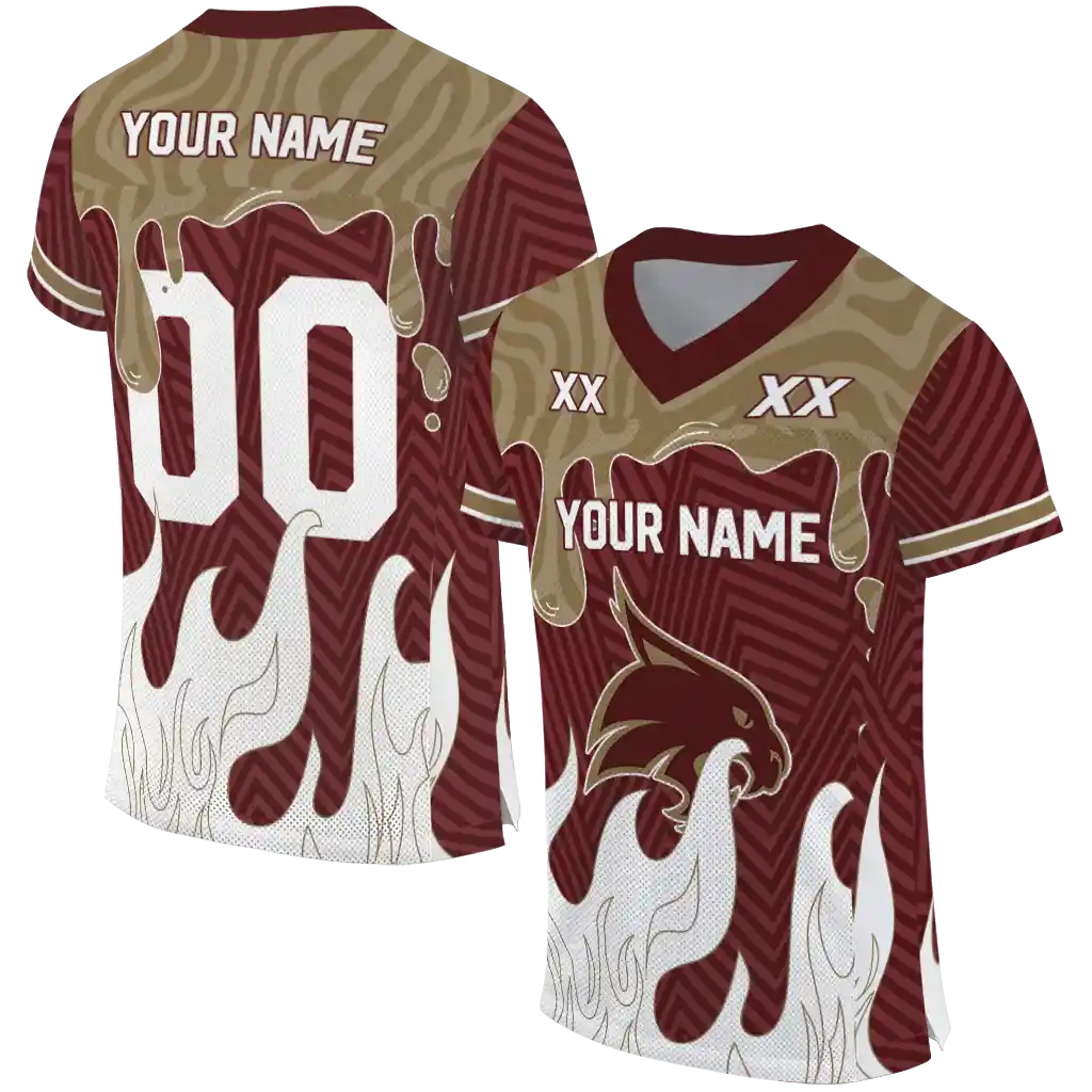 Texas State Bobcats Jersey – Personalized Dripping Flames Maroon White