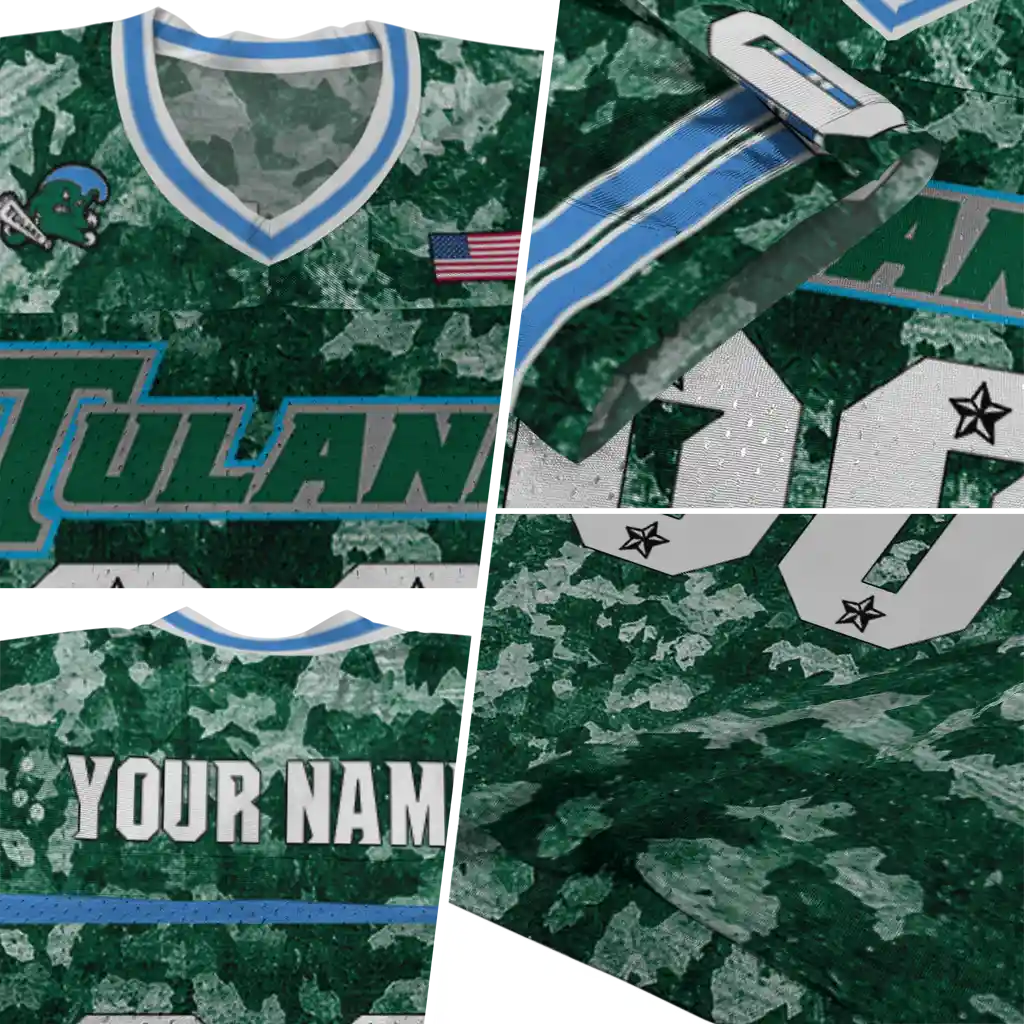 Tulane Green Wave Jersey – Personalized Camouflage Abstract Green