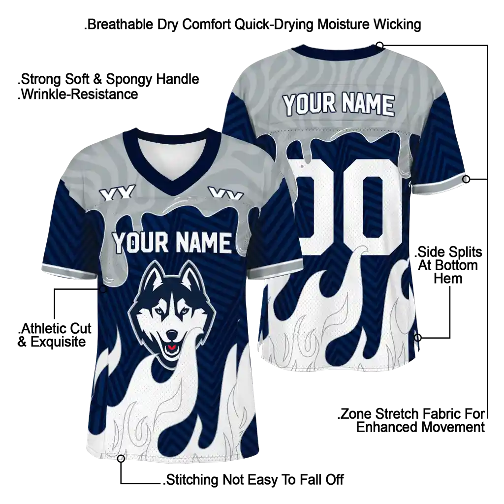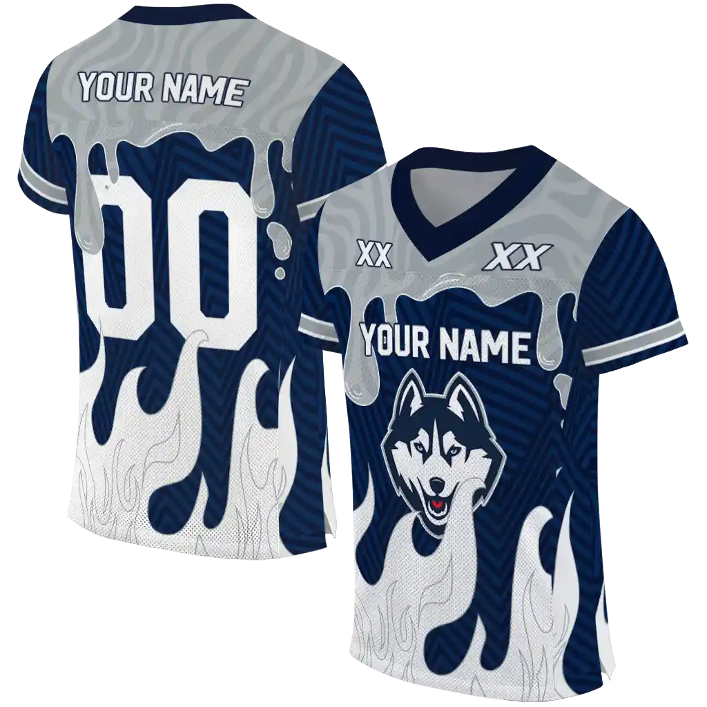 UConn Huskies Jersey – Personalized Dripping Flames Blue White