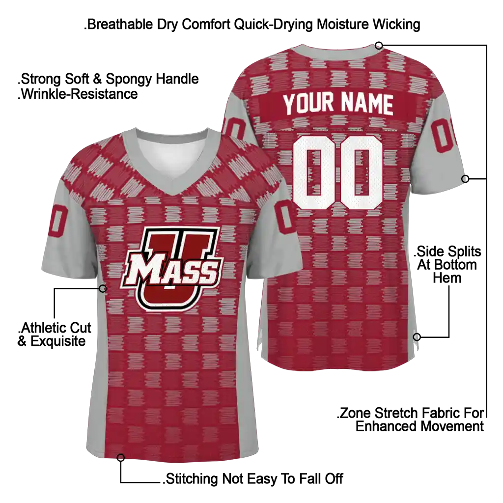 UMass Minutemen Jersey – Personalized Stacked Rectangle Red