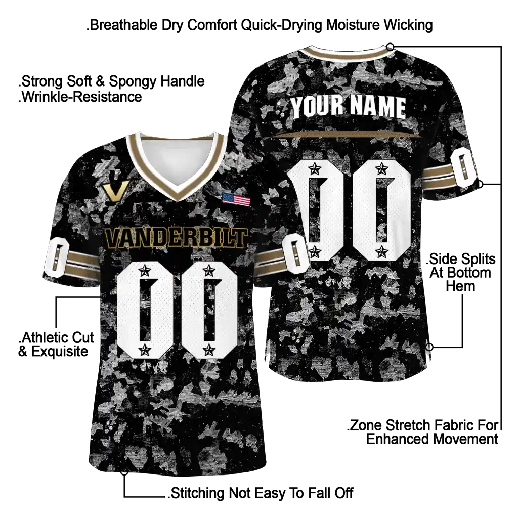 Vanderbilt Commodores Jersey – Personalized Camouflage Abstract Black