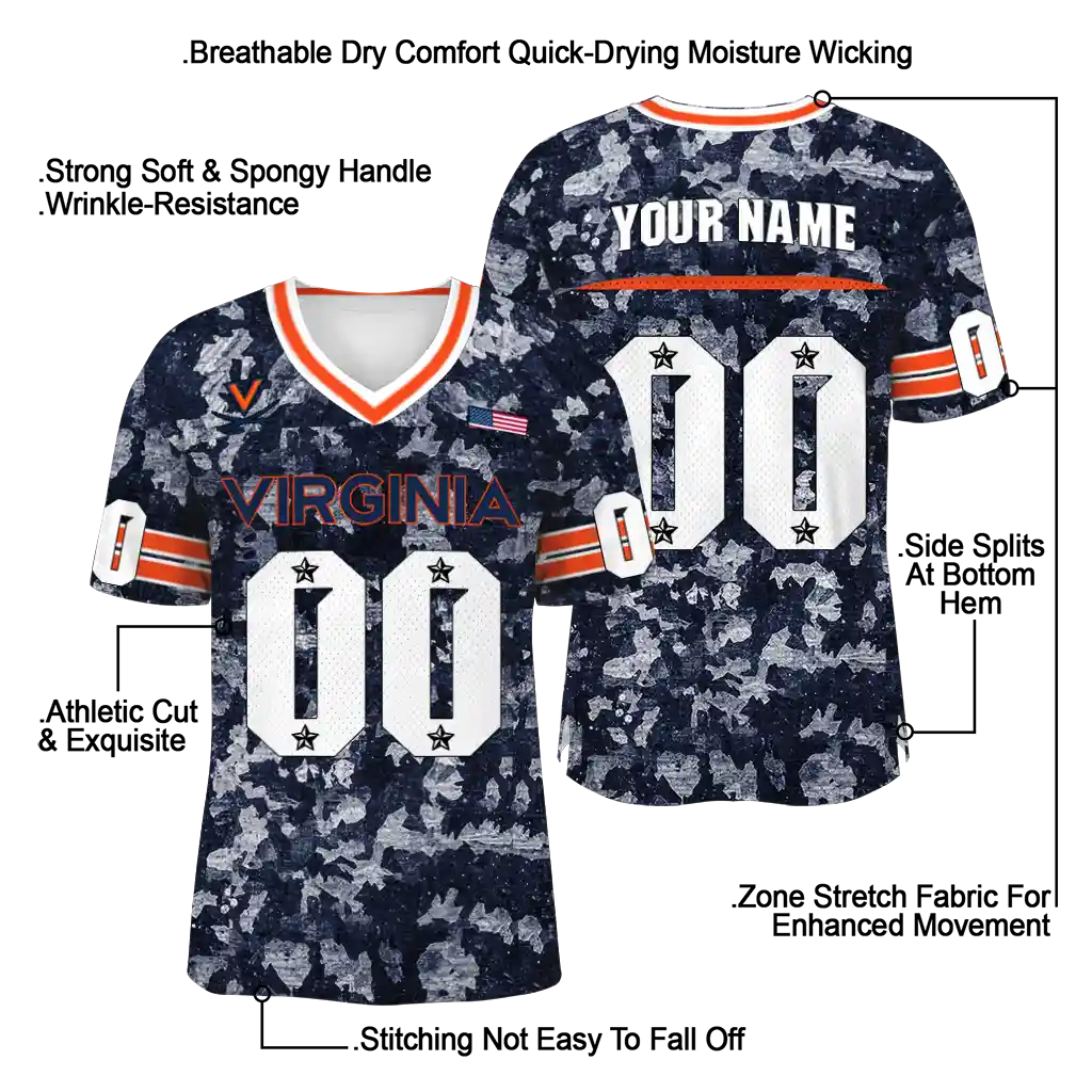 Virginia Cavaliers Jersey – Personalized Camouflage Abstract Blue