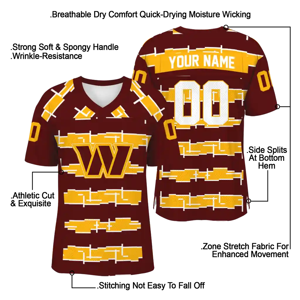 Washington Commanders Jersey – Personalized Layered Grids Burgundy