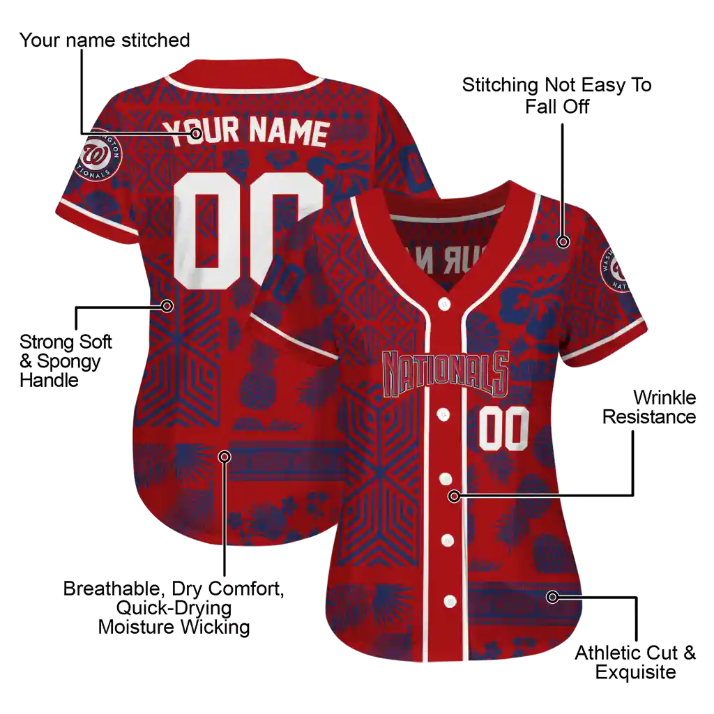 Washington Nationals Jersey – Personalized Pineapple Palm Geo Red