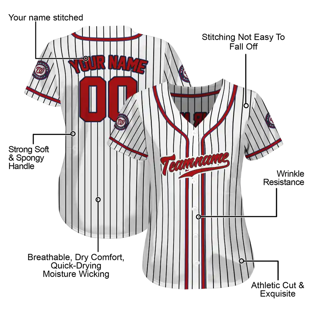 Washington Nationals Jersey – Personalized Pinstripe Lines White
