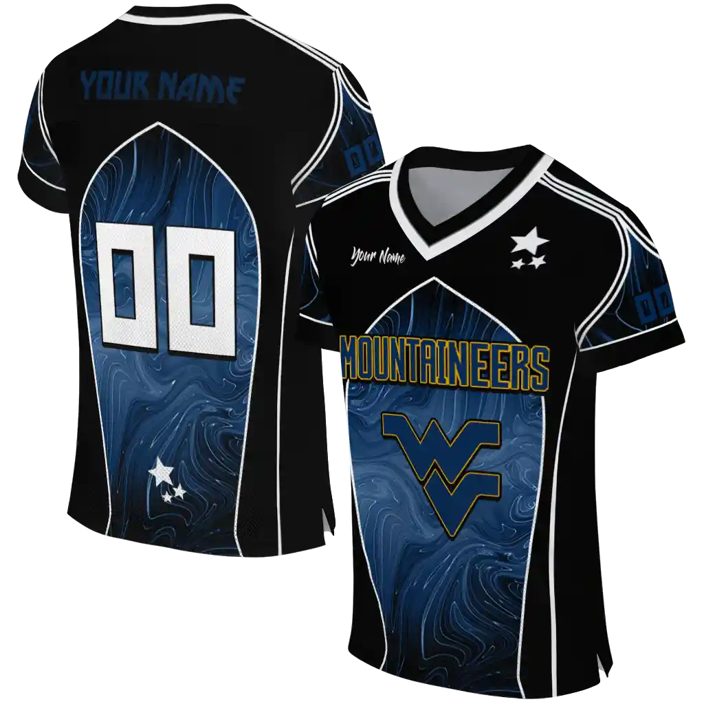 West Virginia Mountaineers Jersey – Personalized Halftone Slant Blue Black