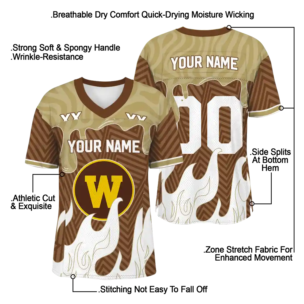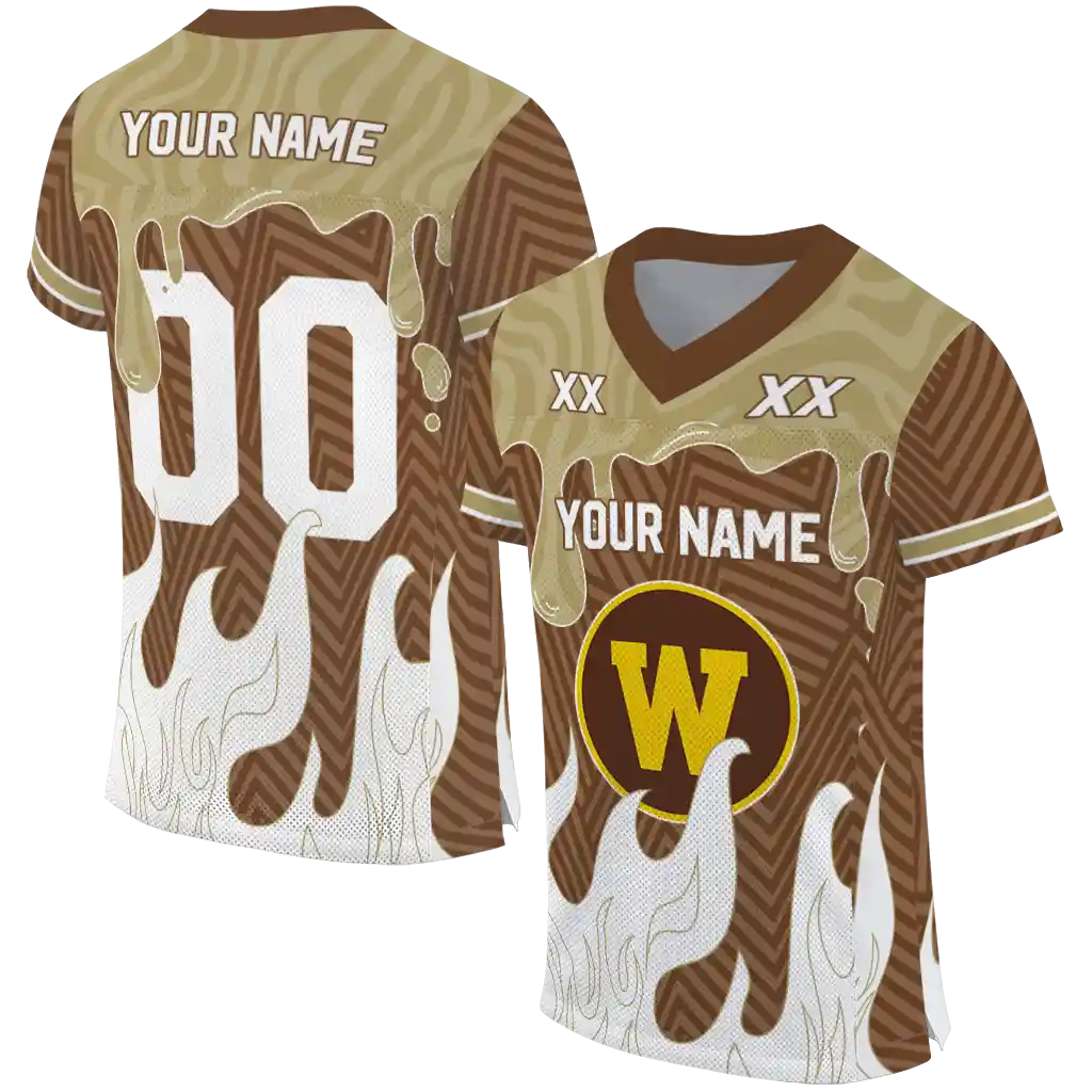 Western Michigan Broncos Jersey – Personalized Dripping Flames Brown White