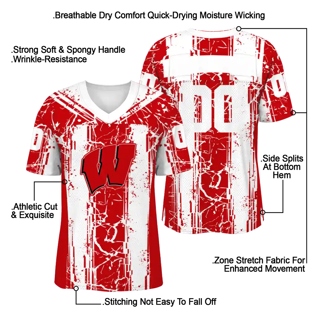 Wisconsin Badgers Jersey – Personalized Rugged Stripes Red